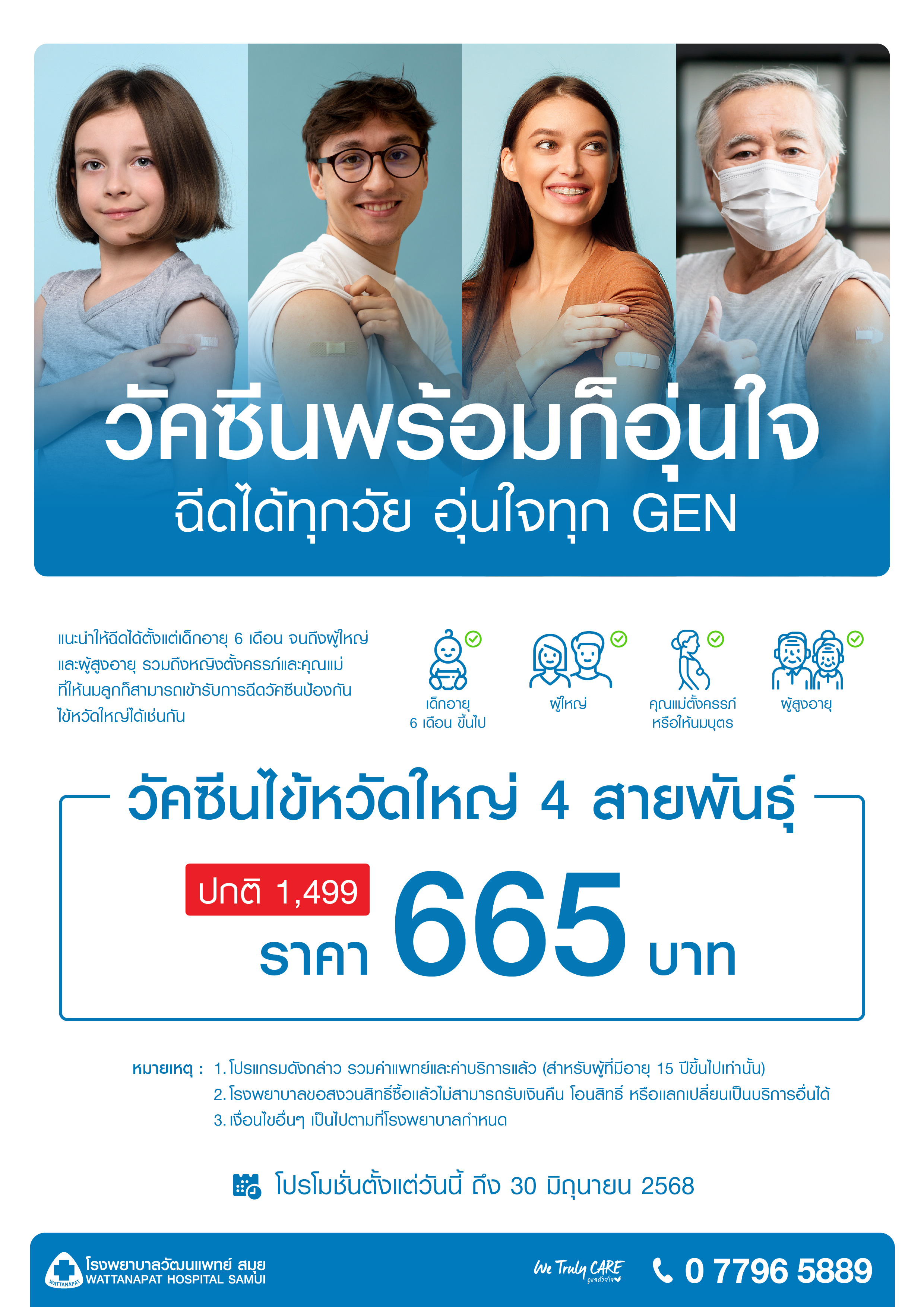 วัคซีนชนิด 4 สายพันธุ์แนะนำให้ฉีดได้ตั้งแต่เด็กอายุ 6 เดือน จนถึงผู้ใหญ่ และผู้สูงอายุ รวมถึงหญิงตั้งครรภ์และหญิงให้นมบุตรก็สามารถเข้ารับการฉีดวัคซีนป้องกันไข้หวัดใหญ่ได้เช่นกัน